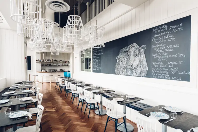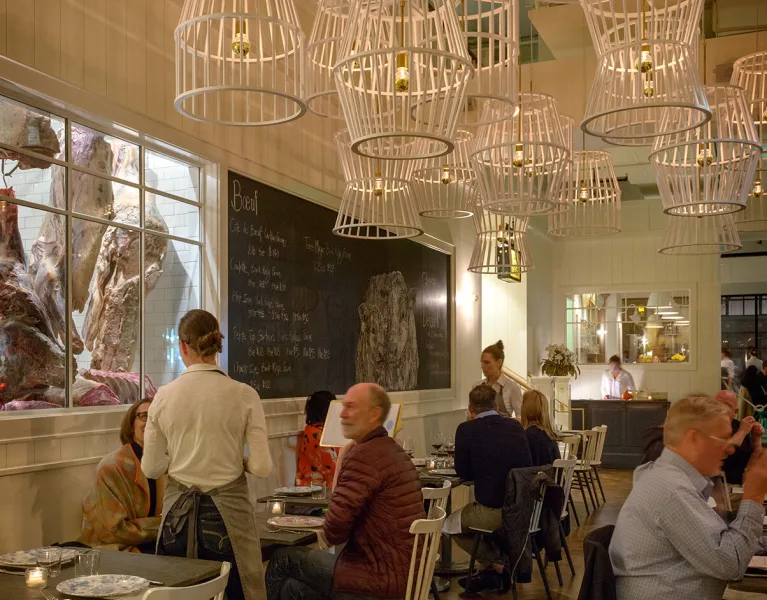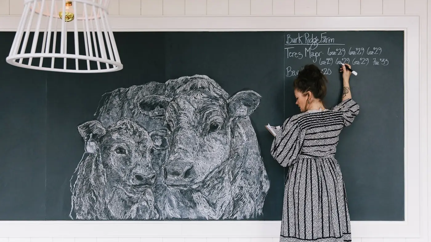 Specialty dry aged grass fed and grass finished steak cuts are sold by weight and availability alongside Chef Taylor Thornhill’s inventive dishes, oft replete with foraged and fermented ingredients.